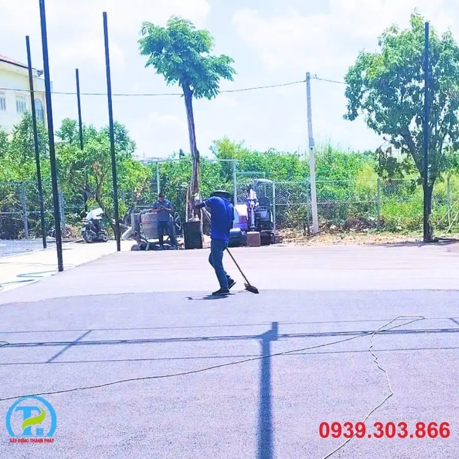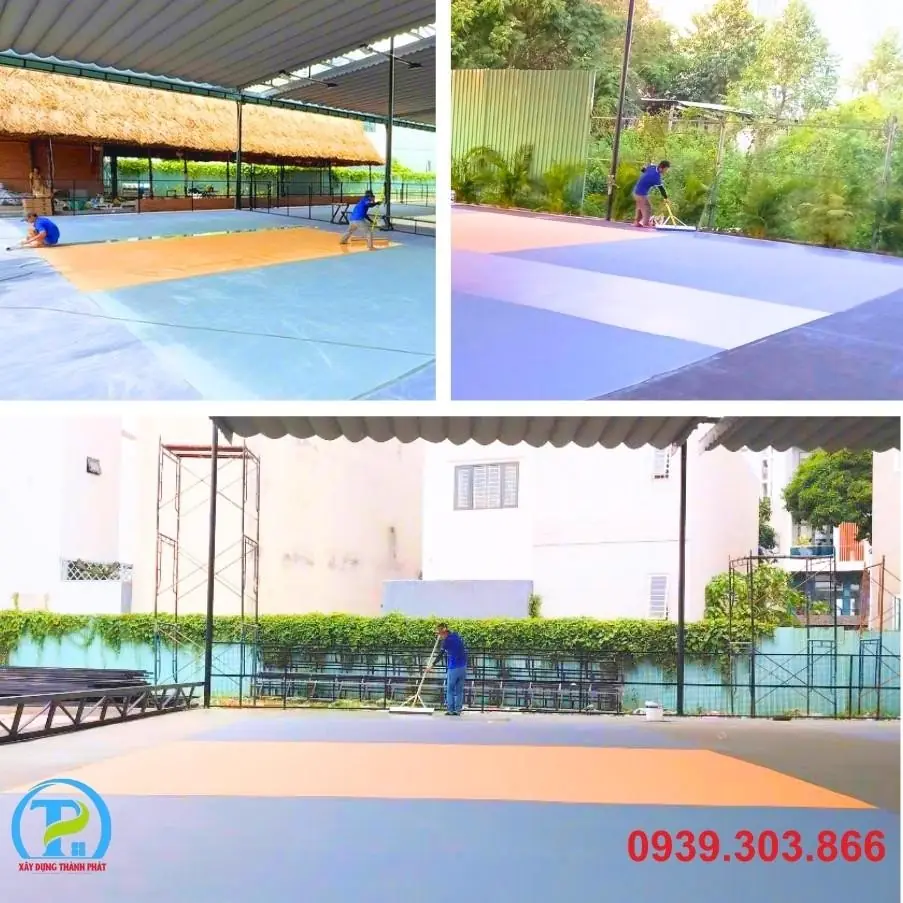 Để đảm bảo chất lượng và độ bền vượt trội cho 6 sân đấu, đơn vị thi công Thành Phát áp dụng một quy trình chuyên nghiệp, chặt chẽ: